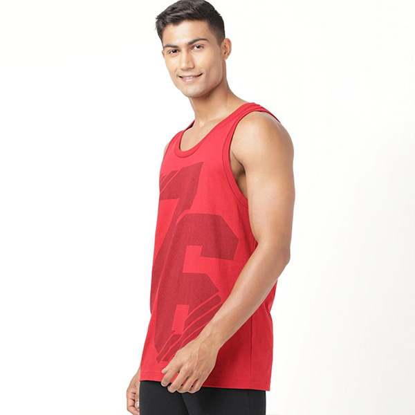 Red Printed innerwear vests in white, has a round neck, sleeveless