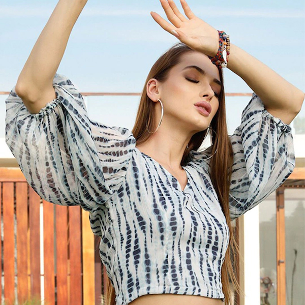 Off White & Blue Tie and Dye Georgette Crop Top