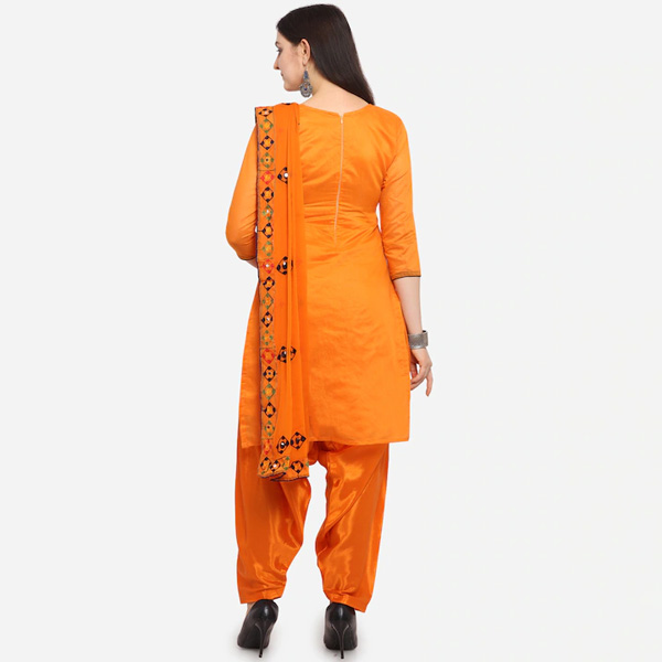 Women Orange Unstitched Dress Material